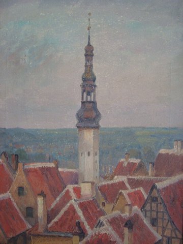Bagpå blindramme med Kirke i Reval (tysk navn for Tallinn)