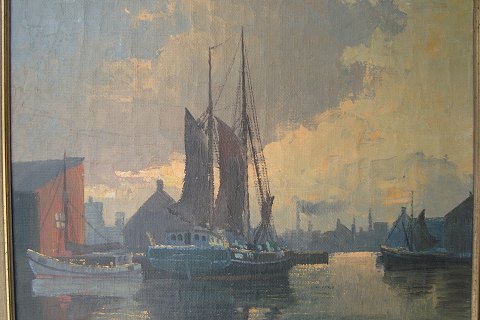 Gustav P. Rimmer (1904-88): Havneparti. Olie på lærred. Sign.: GP Rimmer. Bagpå blindramme - gammelt auktionsnummer fra ABR. 45x58 (52x65)