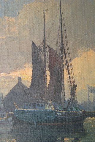 Gustav P. Rimmer (1904-88): Havneparti. Olie på lærred. Sign.: GP Rimmer. Bagpå blindramme - gammelt auktionsnummer fra ABR. 45x58 (52x65)