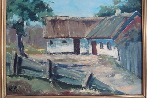 Knud Bøstrup (1927-2011): Landskab med gård. Olie på lærred. Sign.: K. B. 30x41 (41x52)