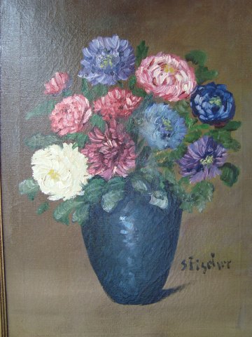 Sigrid Fischer (død 1936): Asters i vase. Olie på lærred. Sign.: S. Fischer. Nyrenset. Bagpå lærred - Sigrid Fischer 48x33 (55x40)