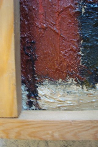 Georg Tscherning-Petersen (1909-94): Landskab med huse. Olie på plade. Sign.: G.T.P. (Utydeligt) 49x64 (53x68)
