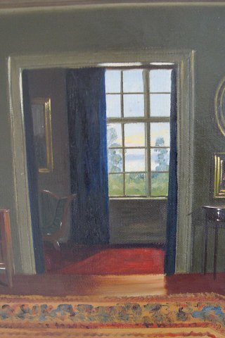 Ubekendt kunstner (20 årh): Interiør fra stue. Olie på lærred. Sign.: Fischer (måske, meget utydeligt) 55x65 (67x77)