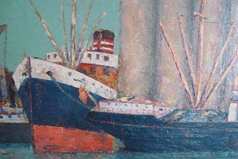 Selmer Emmanuel Ammitzbøll Olsen (1898-1983): Havneparti fra industrihavn 1938. Olie på lærred. Sign.: Ammizbøll 38. Indrammet i nyere guldramme. 68x98 (82x112)