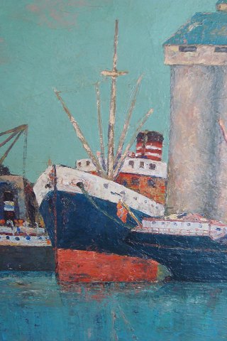 Selmer Emmanuel Ammitzbøll Olsen (1898-1983): Havneparti fra industrihavn 1938. Olie på lærred. Sign.: Ammizbøll 38. Indrammet i nyere guldramme. 68x98 (82x112)