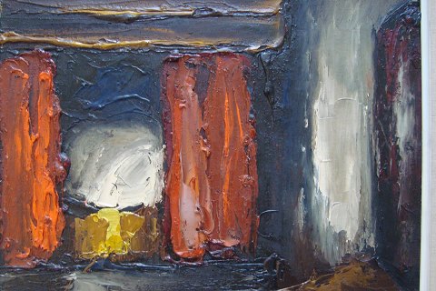 Adelbert Winther Venø (1913-71): Almue interiør. Olie på lærred. Sign.: A.W. Venø. 45x50 (64x69) A. Venø var uddannet i Holland hos maleren van Hoff.