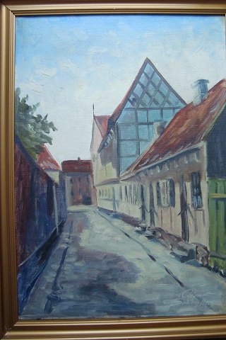 Søren Bølling Hansen (født 1916): Gade i Odense. Olie på lærred. Sign.: Bølling Hansen Betegnet - Odense. 67x48 (75x56)