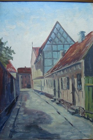 Søren Bølling Hansen (født 1916): Gade i Odense. Olie på lærred. Sign.: Bølling Hansen Betegnet - Odense. 67x48 (75x56)