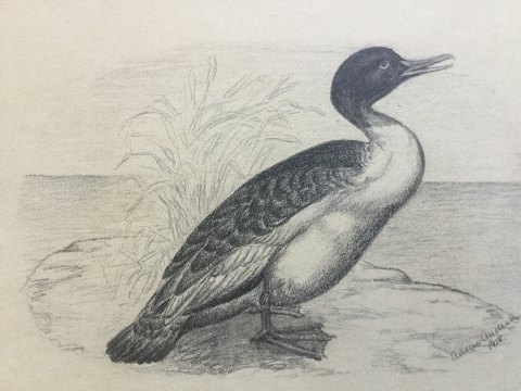 Anker Andersen (19/20 årh): Skallesluger. Bly på papir. Sign.: Anker Andersen 1918. Uden ramme. 22x27 2611