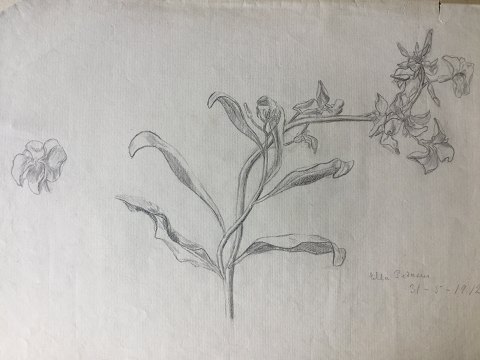Ella Pedersen (19/20 årh): Lilje 1912. Bly på papir. Uden ramme. Sign.: Ella Pedersen 31-5-1912. Papiret er lidt flosset i kanten. 32x49 32611
