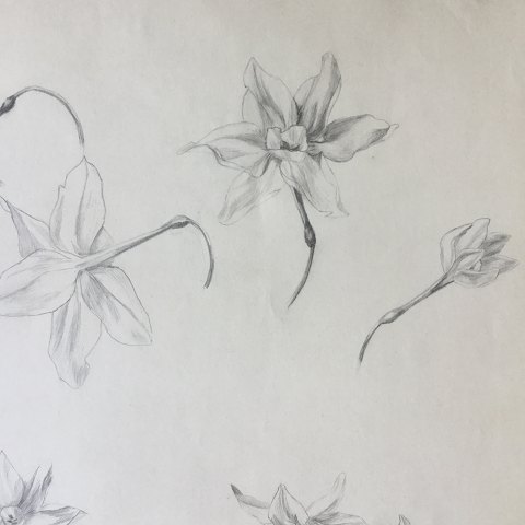 Ella Pedersen (19/20 årh): Skitse af blomster 1913. Bly på papir. Uden ramme. Sign.: Ella Pedersen Dateret - 5-12-1913. Papiret er lidt flosset i kanten. 48x32 32611