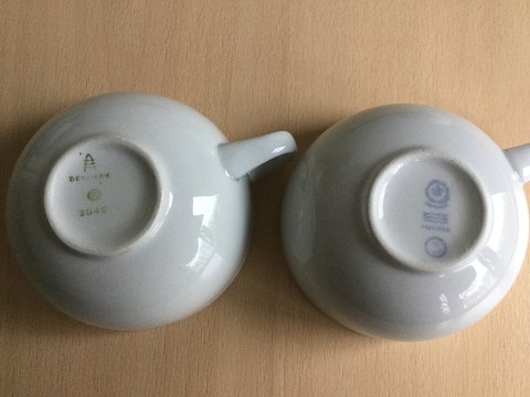 2 stemplet for Aluminia og 3 for Den Kongelige Fajancefabrik.