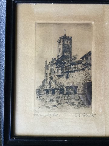 Anton Schütz (1894-1977): 2 raderinger fra Wartburg i Eisenach, Tyskland. Begge betegnet Wartburg og Original radering. Begge signeret - A. Schütz 21x16 (23x18) Martin Luther boede i Wartburg 1521-22.