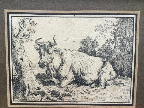 Adam von Bartsch (1757-1821): Liggende ko. Efter maleri af Paulus Potter (1625-54) Radering på papir. Sign.: Usigneret 11x15 (19x26)