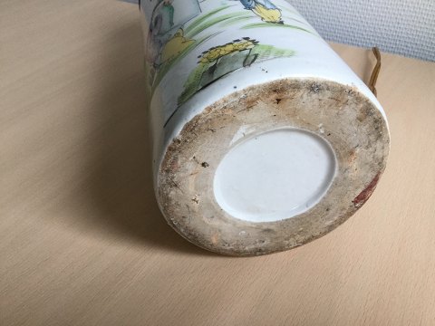 Antik Hatstand lampe. Kina 19 årh. Polykromt dekoreret med personer i landskab. Uden stempel Højde uden messingmontering - 28 cm. Diameter - 11½ cm. Der er gennemboring til ledning.
