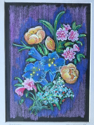 Hans J. Larsen (20 årh): Buketten 1959. Pastel/farvekridt på papir. Betegnet - Buketten Sign.: Hans J. Larsen 59. 27x20 (37x28)