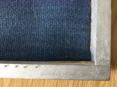 Lisbeth Hofmeister (født 1953): Teaterscene 1979. Vævning påsat ramme. Sign.: Lisbeth Hofmeister 1979 (bagpå ramme) 33x45
