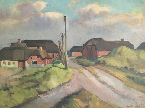 Eiler Løndal (1887-1971): Kystlndskab med gård. Olie på lærred. Sign.: Eiler Løndal. 67x90 (74x97) 26019