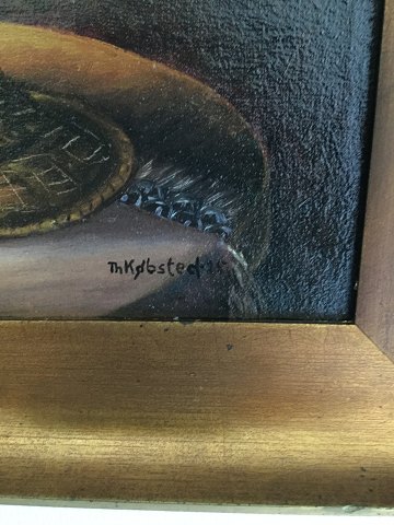 Th. Købsted (19/20 årh): Blomsterbuket i kurv 1915. Olie på lærred. Nyrenset. Sign.: Th. Købsted - 15. 44x33 (55x44)