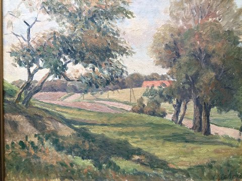 Harry Schou (1911-88): Parti fra Vinkelvej ved Viborg 1944. Olie på lærred. Sign.: H. Schou 40x49 (46x56)