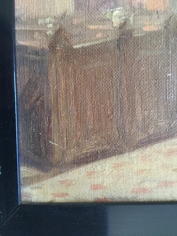 Olie på lærred monteret på plade.