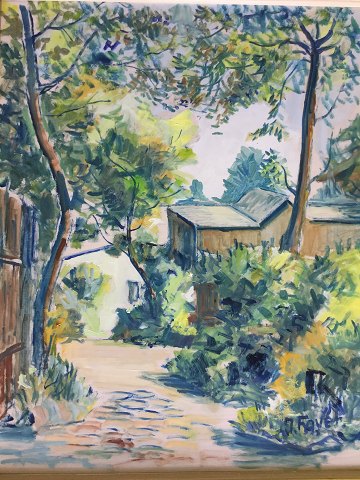 J. Hayer (20 årh): Gårdeksteriør. Olie på plade. Sign.: J. Hayer eller I. Hayer 50x40 (61x51)