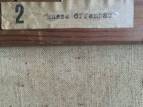 Bagpå udstillingsmærkat nr. 2, samt stempel fra "Malersammenslutningen af 1927".