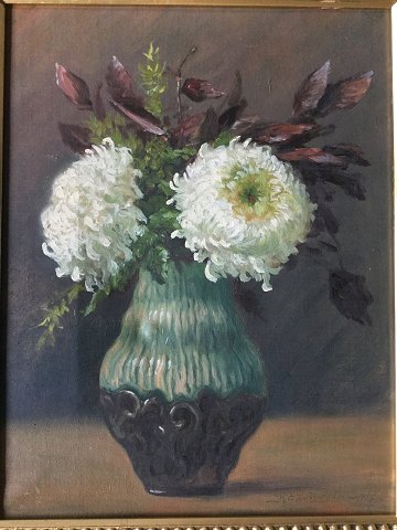 Karl Emil Lundgreen (1884-1934): Asters i smuk jugendvase 1916. Olie på lærred. Sign.: K.E. Lundgreen 1916 38x29 (54x45)