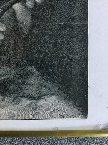 H. Gedan (19 årh): Pige der spejler sig. Træsnit på papir. År 1900. Sign.: H. Gedan x.I. Indrammet med defekt glas. 32x23 (36x29)