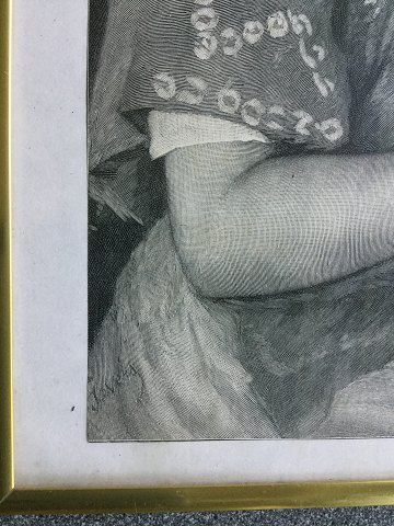 H. Gedan (19 årh): Pige der spejler sig. Træsnit på papir. År 1900. Sign.: H. Gedan x.I. Indrammet med defekt glas. 32x23 (36x29)