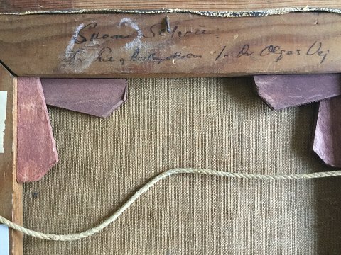 Bagpå blindramme skrevet: Sv. Schou samt Fru... ??Dronning Olgas Vej.