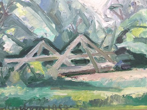 Landskab med bro ved Lillån, Örebro, Sverige 1958.
