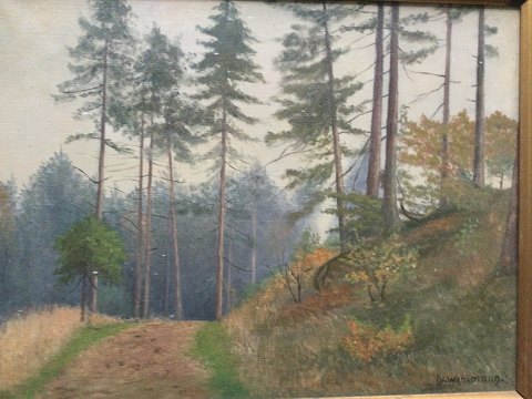 N. Wehlmann (20 årh): Parti fra Hald Sønderskov ved Viborg. Olie på lærred. Sign.: N. Wehlmann 32x42 (43x53) N. Wehlmann var store dele af sit liv Portner ved Brede Værk.