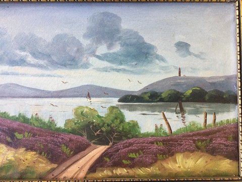 H- Lundberg (20 årh): Parti fra Himmelbjerget. Olie på lærred. Sign.: H. Lundberg (under rammekant). 29x42 (38x52)