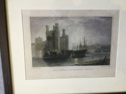 William Wallis (født 1796): Eagle Tower Caernarvon Castle 1831. Koloreret stålstik på papir. efter maleri af Henry Gastineau (1791-1876) Udgivet af Jones & Co London 1831. 12x17 (21x25)