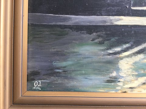 Ole Jonsrud (1875-1955): Solnedgang bag bjerge 1951. Olie på plade. Sign.: O.J. 1951. 43x60 (52x68)