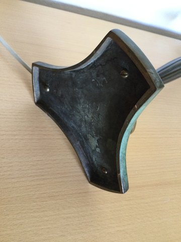 Bronze Bordlampe. Delvis grønpatineret. trepasfod med dyrepoter og kanneleret stamme. Højde inkl. montering 38 cm.
