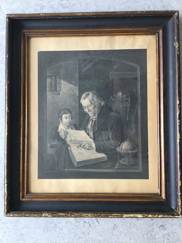 Ubekendt kunstner (19 årh): Geografi Time "Geography Lesson". Efter maleri 1827 af Eduard Karl Gustav Pistorius Lebrecht (1796-1862). Stålstik på papir. Usigneret. Smuk samtidig ramme. 34x29 (51x44)
