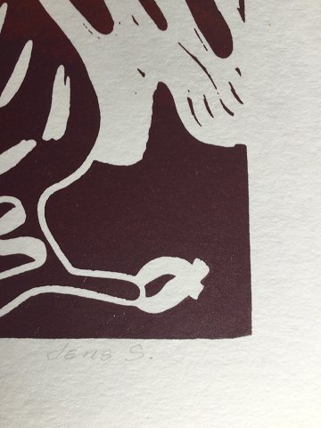 Jens Sørensen (1923-98): Komposition med kok. Serigrafi på papir. Sign.: Jens S. Nr. 2/11 Uden ramme. 50x35