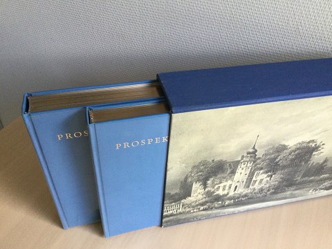 J.F. Richardt: Prospekter af Danske Herregårde. 1976 2 bind i original kassette og originale plast omslag. Hellærred med top guldsnit. Meget pæn stand.