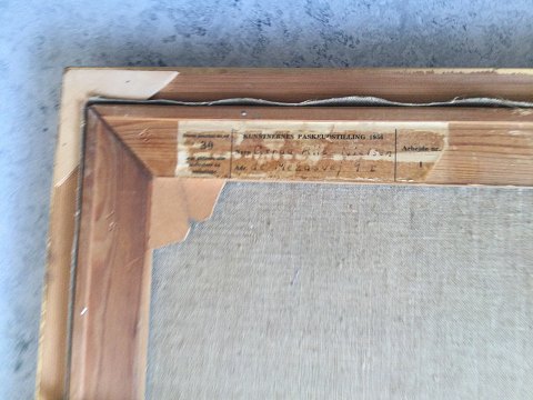 Bagpå mærkat fra Kunstnernes Påskeudstilling 1956.