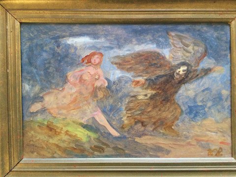 Mytologisk scene med kvinde og døden.