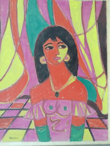 Erik Larsen (1902-75): Kvinde i cirkusmanege Pastel/Akvarel på papir. Sign.: Erik Larsen 63x48 (69x56) Erik Larsen var elev af Karl Larsen 1932-33.