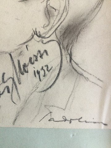 Ebbe Sadolin (1900-82): Portræt af herre 1932. Kul på papir monteret på papir. Sign.: Sadolin Betegnet - Alf..... (kan nogen hjælpe?). Uden ramme 18x18 34121