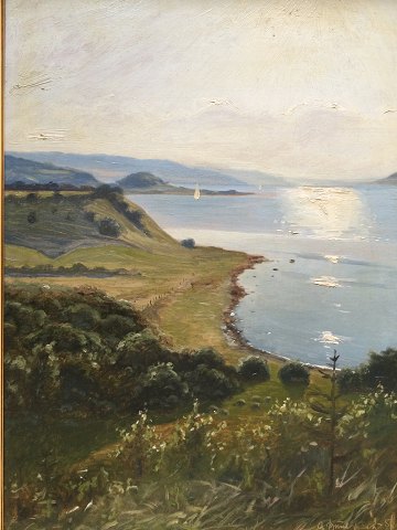 Gunner Bundgaard (1920-2005): Udsigt fra Knudshoved (Raget) ved Mariager 1951 Olie på lærred. Sign.: G. Bundgaard 51 69x51 (79x61) Gunnar Bundgaard