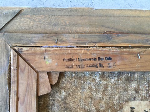 Jens Nielsen (1891-1978): Lazarus' opvækkelse 1945. Sign.: Jens Olie på lærred. Bagpå stempel 10/1 1945, Stockholm 19/1 1946 samt Udstilling i Kunstnernes Hus i Oslo 1957 nr. 25. 71x85 (87x101)