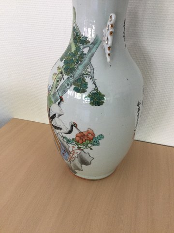 Stor kinesisk porcelæns vase omlavet til bordlampe.