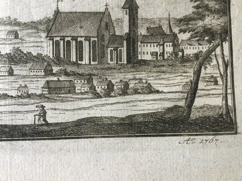 Mariager set fra nordvest med Klosteret og kirken 1767.
