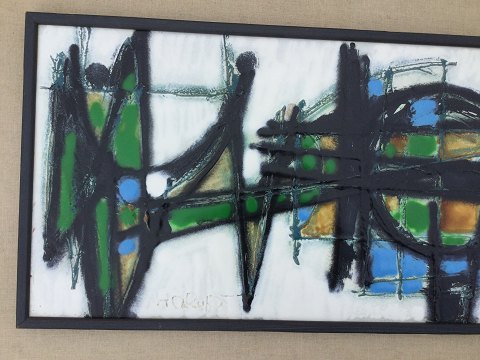 Jens Horup (20 årh): Abstraktion. Emalje på plade. Sign.: Horup 41x84 (63x105)