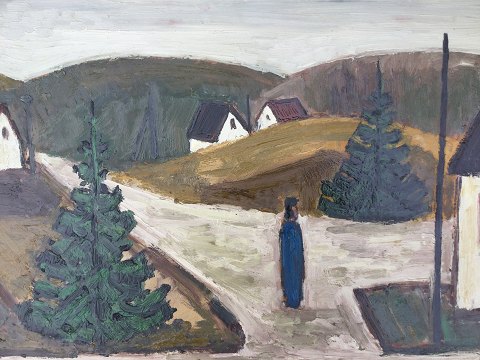 Bagpå - "Landskab med huse og graner" - "Peder Brøndum Sørensen - 67"